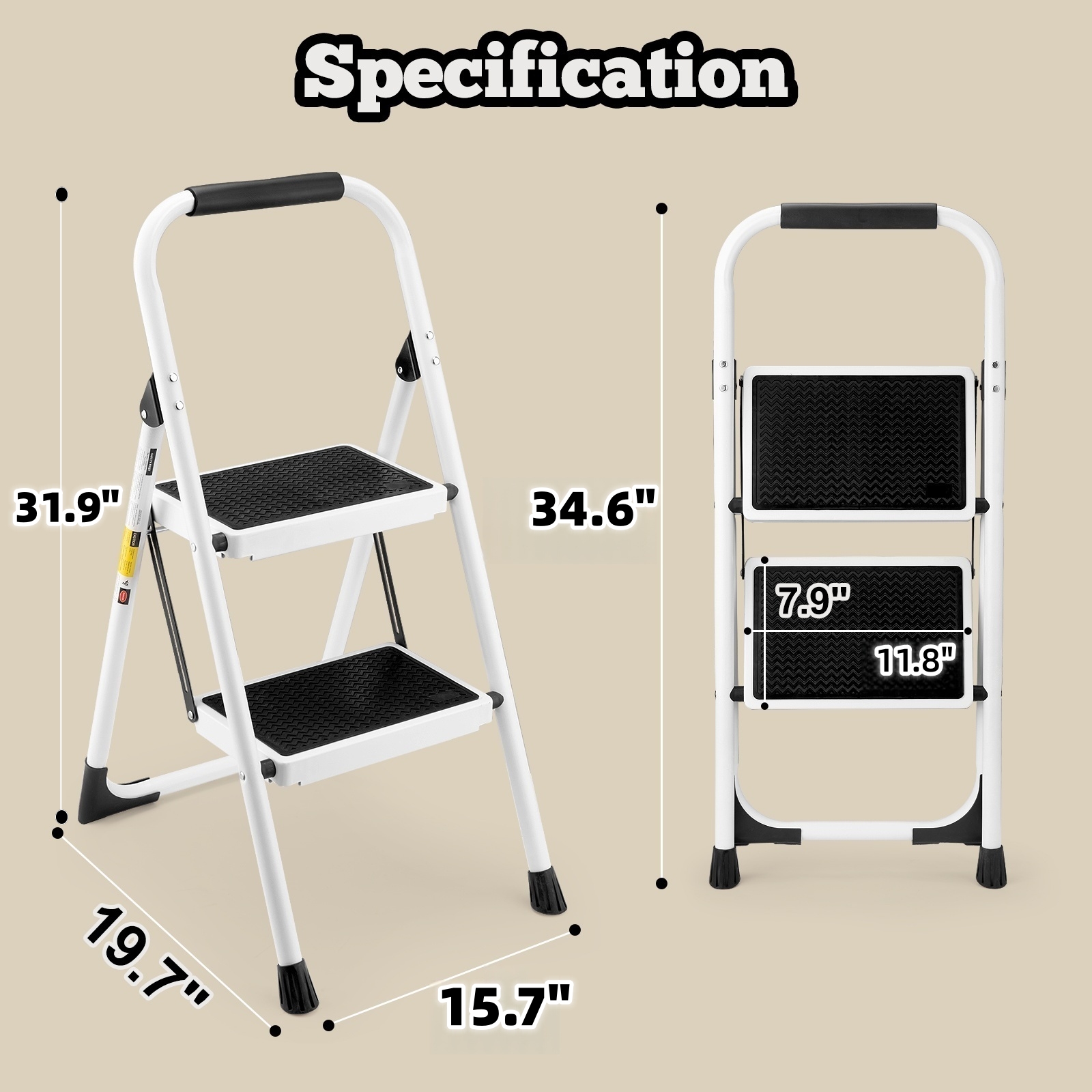 Your New Home Essential: The Ultimate 2-Step Folding Ladder Stool in White!