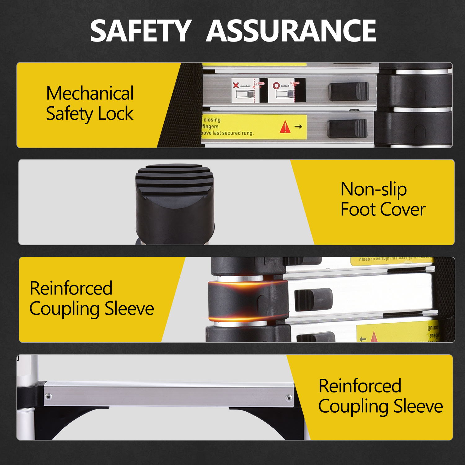 Safety First Design: Engineered with separate telescopic fixed locks on each step to prevent accidental clamping and ensure stability at any height. Adjust from compact to full 4.1 meters (13.5 feet) for versatile indoor and outdoor use—safety is non-negotiable!